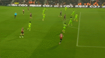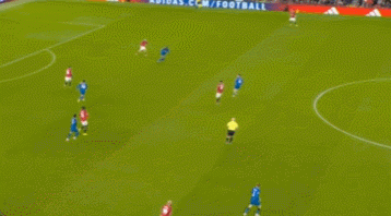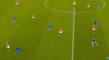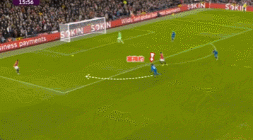 這一次的退防可以從曼聯(lián)的后場(chǎng)30米區(qū)域看起,當(dāng)時(shí)塞梅尼奧處于無(wú)球狀態(tài),他意識(shí)到曼聯(lián)的左邊中衛(wèi)盧克肖將會(huì)前插,于是塞梅尼奧非常警覺(jué)地一路高速回追。