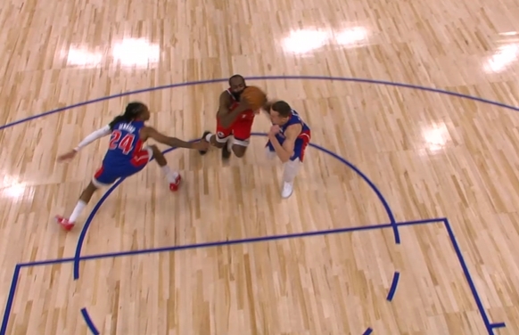 追平關(guān)鍵一球!哈登造成鄧羅犯規(guī)打成2+1 活塞挑戰(zhàn)失敗